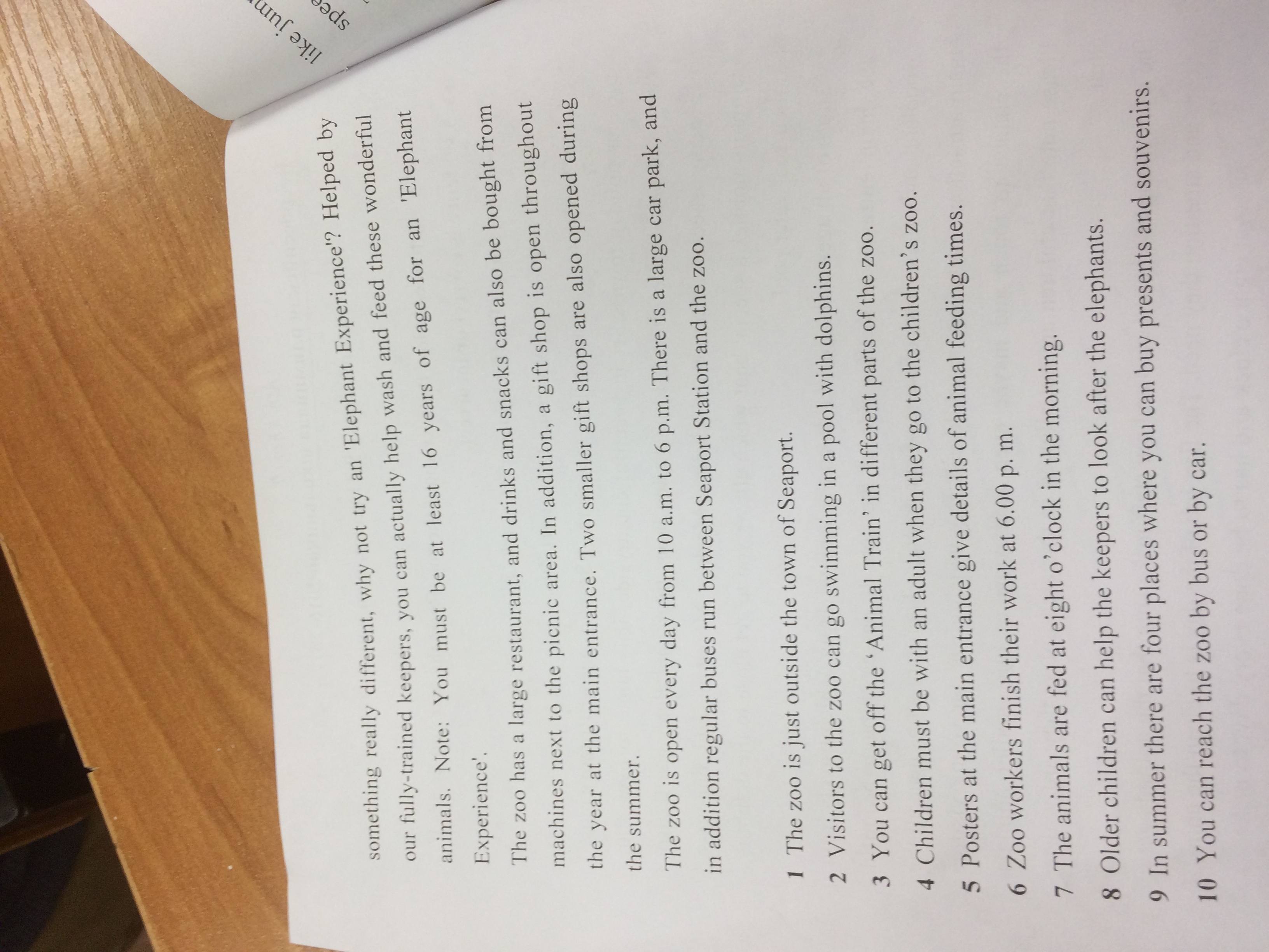 Добро пожаловать в морской порт Seaport Zoo находится всего в двух милях от центра Морского порта, одного из самых популярных городов для отдыха в Британии. Расположенный в красивой сельской местности, здесь обитает более 400 животных со всего мира, включая львов, тигров и слонов. В нем также есть много особых достопримечательностей, в том числе Monkey Mountain и наш новый Dolphin-mobile, специальная лодка, которая позволяет вам приблизиться к дельфинам в их бассейне с морской водой. Посетители всех возрастов получат удовольствие от поездки на «Animal Train», который движется от главного входа в дальней зону зоопарка. Он проходит через красивый лес и предлагает вид на некоторых наших животных. Рядом находятся все основные достопримечательности, в том числе детский зоопарк, который дает нашим молодым посетителям возможность прикоснуться и, возможно, даже кормить некоторых из наших маленьких животных. Обратите внимание, что дети не допускаются в этом районе, если они не со взрослым. Работа в зоопарке не прерывается, и наш персонал следит за тем, чтобы животные получали всю необходимую помощь и внимание. Первая работа дня - очистить дома животных, которые начинаются в восемь часов, и их нужно делать каждый день, чтобы убедиться, что животные остались счастливыми и здоровыми. Мы кормим животных в зоопарке шесть сумок моркови, шесть ящиков бананов, восемь ящиков яблок и десять мешков картофеля каждую неделю. Ворота зоопарка закрываются в 6 часов вечера. но работа по-прежнему продолжается, так как перед сном есть еще много вещей. Последняя работа дня - накормить слонов своим ужином, а затем - спокойной ночи и крепкого сна. Если вы хотите узнать больше о своем любимом животном, тогда придите к одному из коротких разговоров наших сотрудников. Переговоры меняются каждый день, поэтому проверяйте плакаты у главного входа, чтобы убедиться, что вы ничего не пропустите. Или для