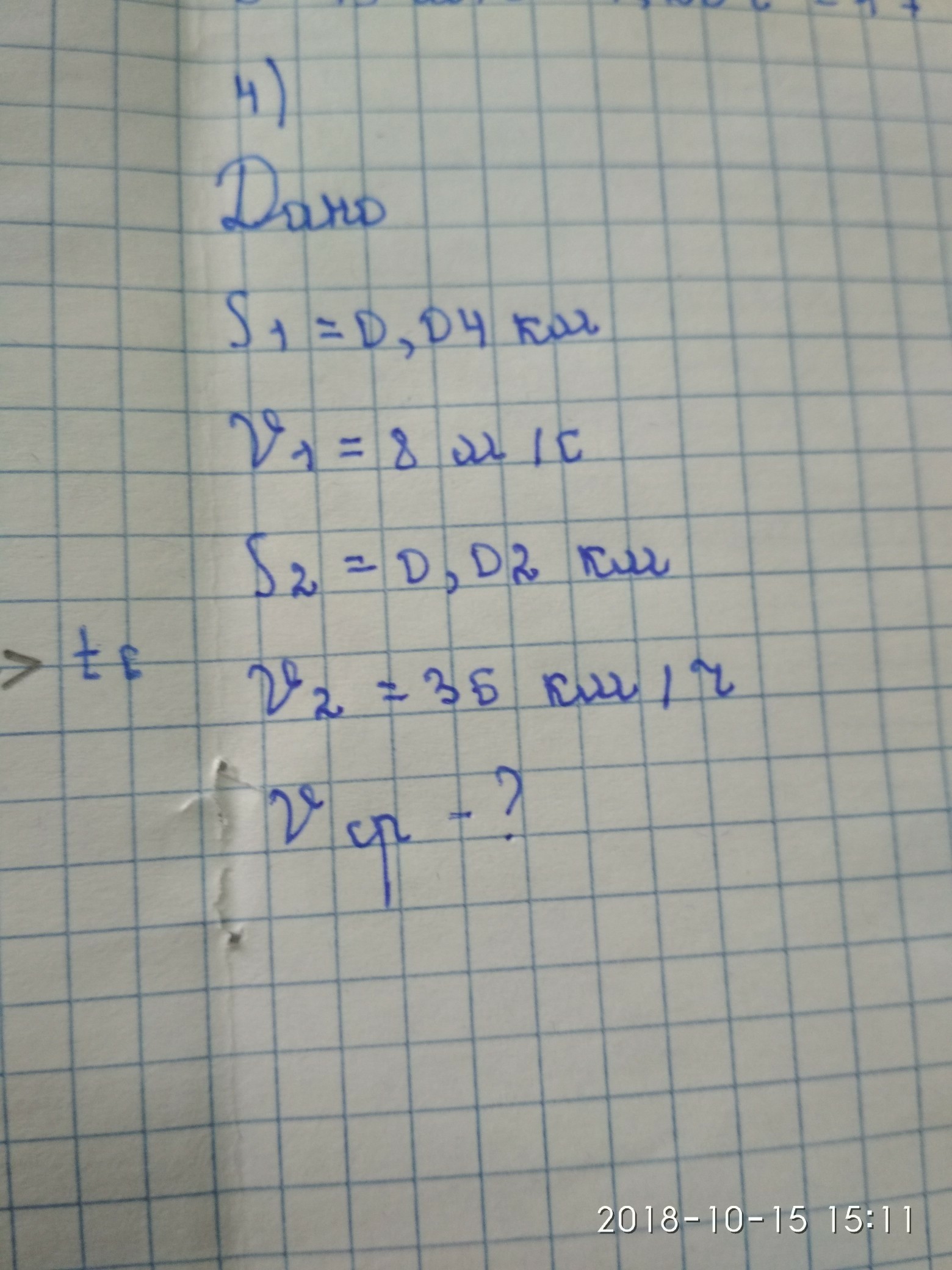 дано S1=400 м V1=8 м\с S2=200 м V2=36 км\ч=10 м\с Vср- ?