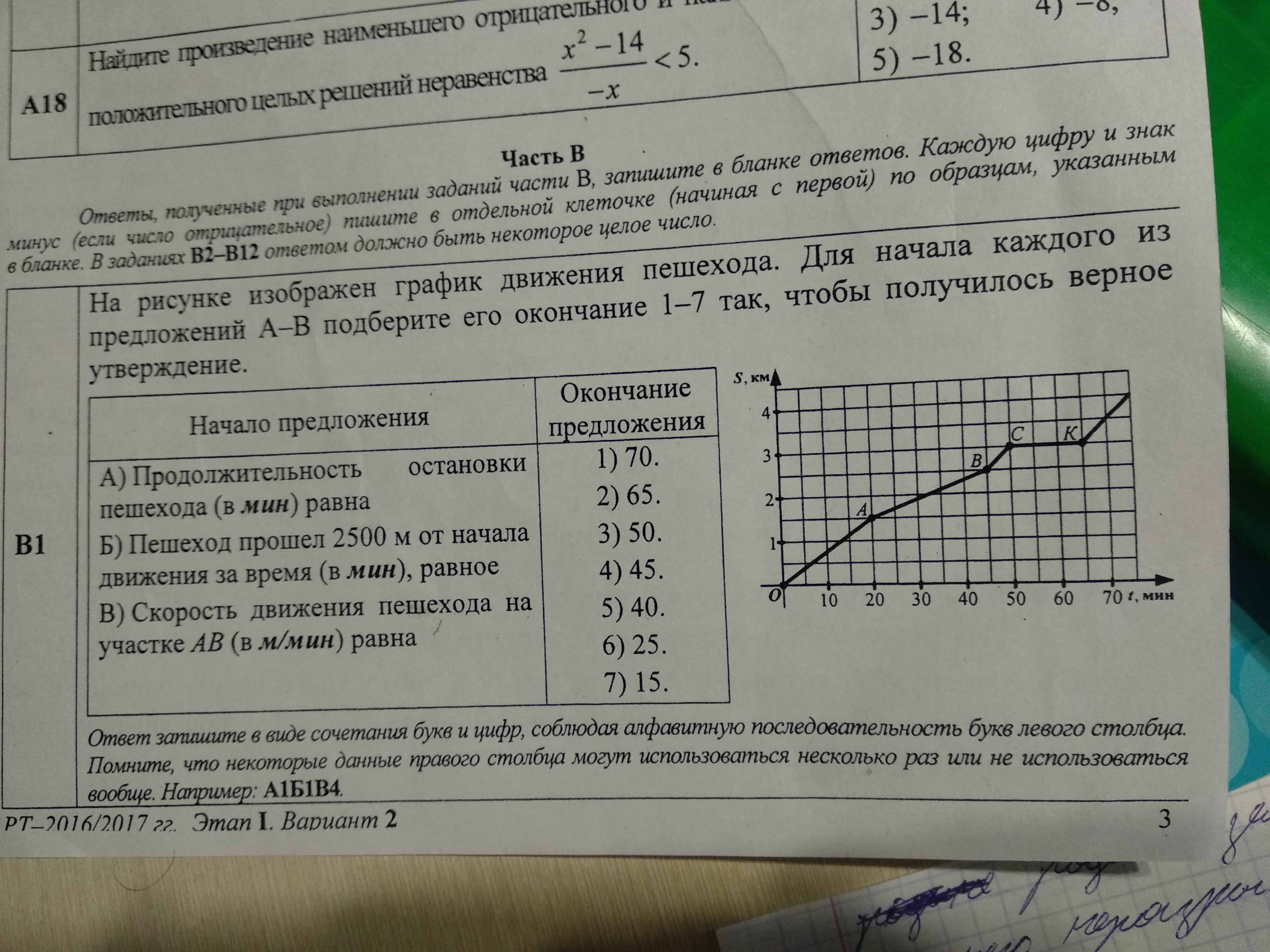В) отрезок АВ длиной 1 км пешеход прошёл за 25 мин.