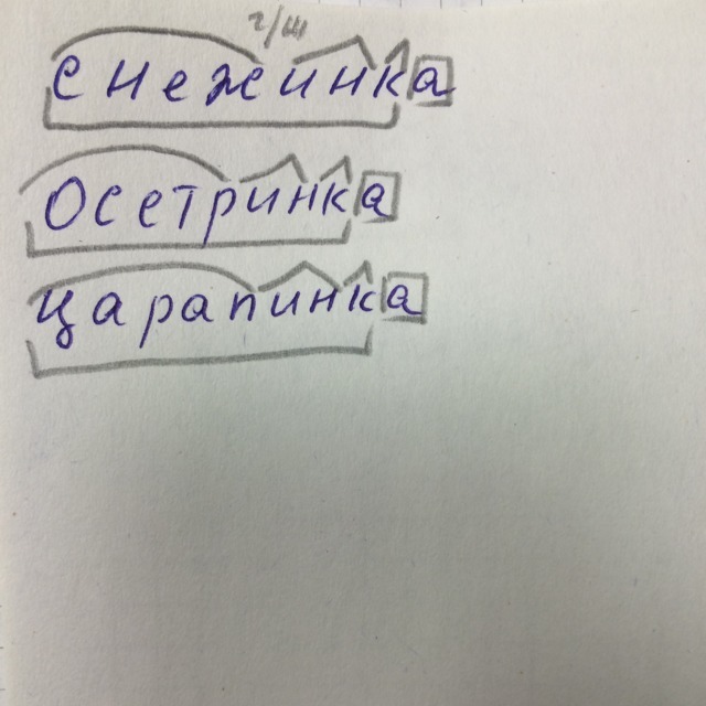 разберите по составу слова снежинка ,осетринка, царапинка.И напишите почему именно так ини разбираются .