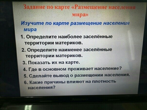6.)Факторы, влияющие на размещение населения Анализ размещения населения — важная задача географии населения. Чаще всего оно определяется количеством жителей на 1 квадратный километр, то есть показателями плотности населения (по миру он составляет 40 человек на квадратный километр).