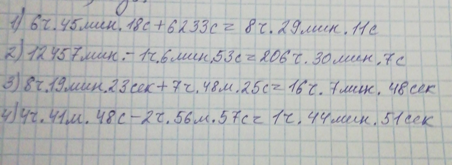 1)6ч. 45мин. 18с + 6233с=...ч...мин...с