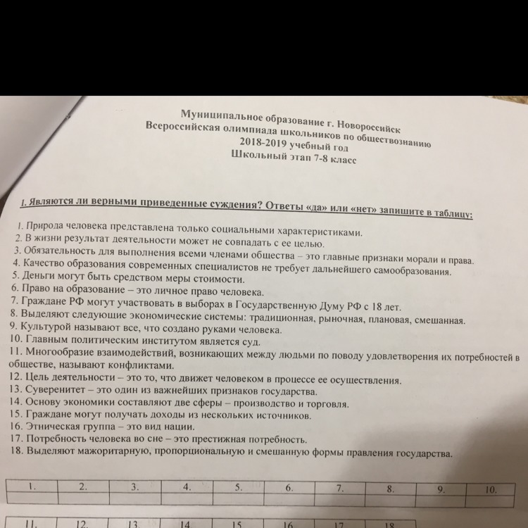 Являются ли верными приведённые суждения? Ответы «да» или «нет» запишите в таблицу