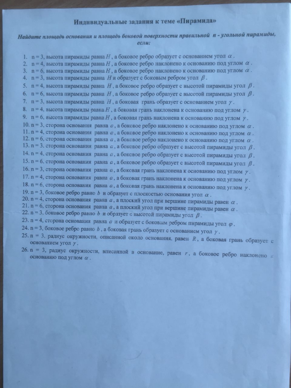 Высота пирамиды Н = bsinα.