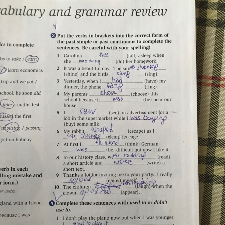 8) we were reading, was writing