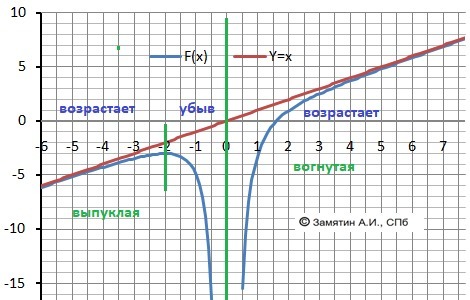 Возрастает: X∈(-∞;-2)∪(0;+∞), убывает - Х∈(-2;0)