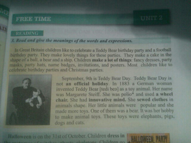 В Британии дети любили праздновать день рождения Мишки Тедди и день рождения футбола. Для этого они делали милые вещи. Они делали торты в виде мяча, медведя и корабля. Дети делали множество вещей : удивительные наряды, маски, шляпы, бэйджики, приглашения и постеры. Большинство детей любят праздновать дни рождения и Рождество.