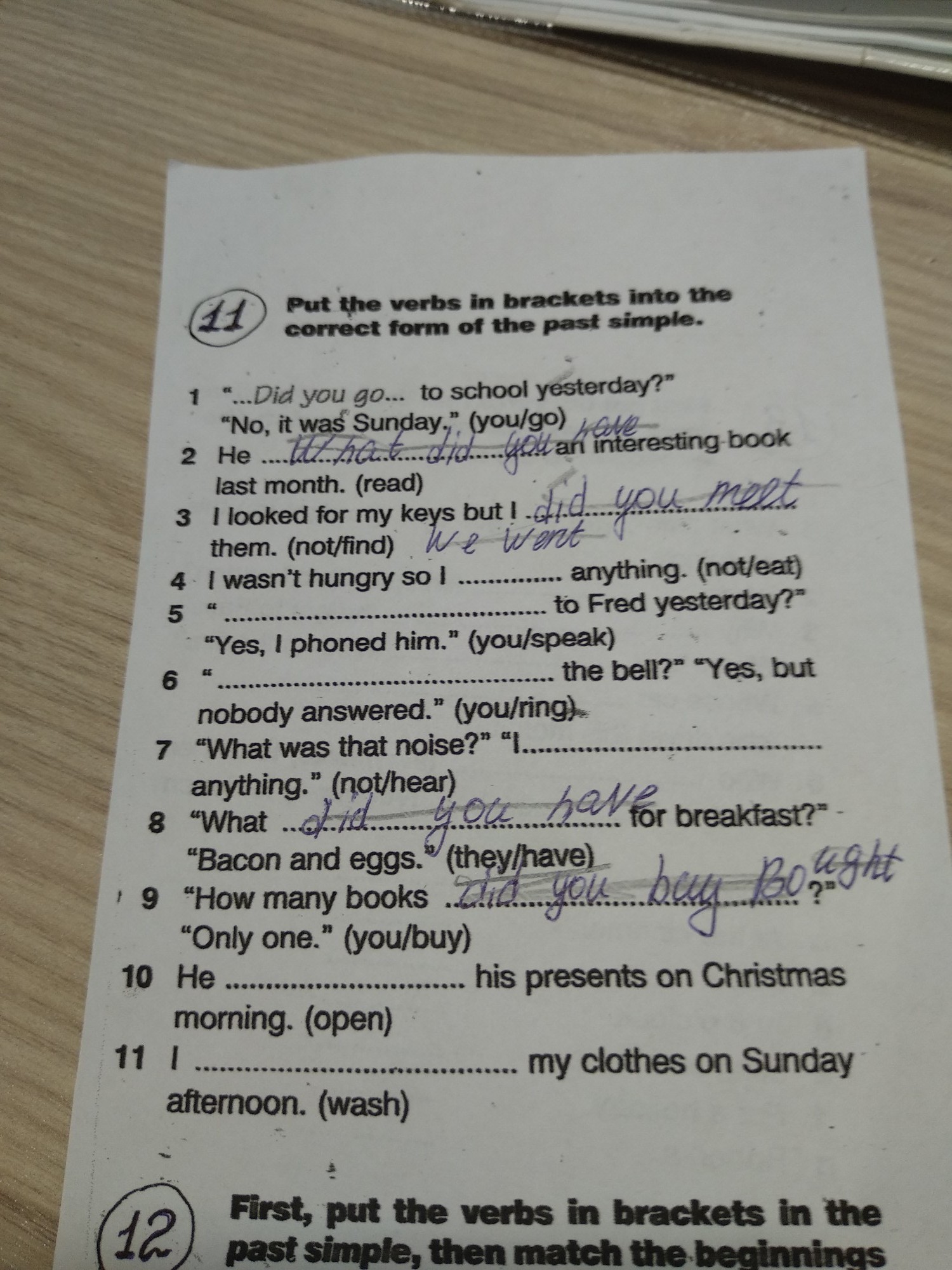 11. I washed my cloathes on sunday afternoon.
