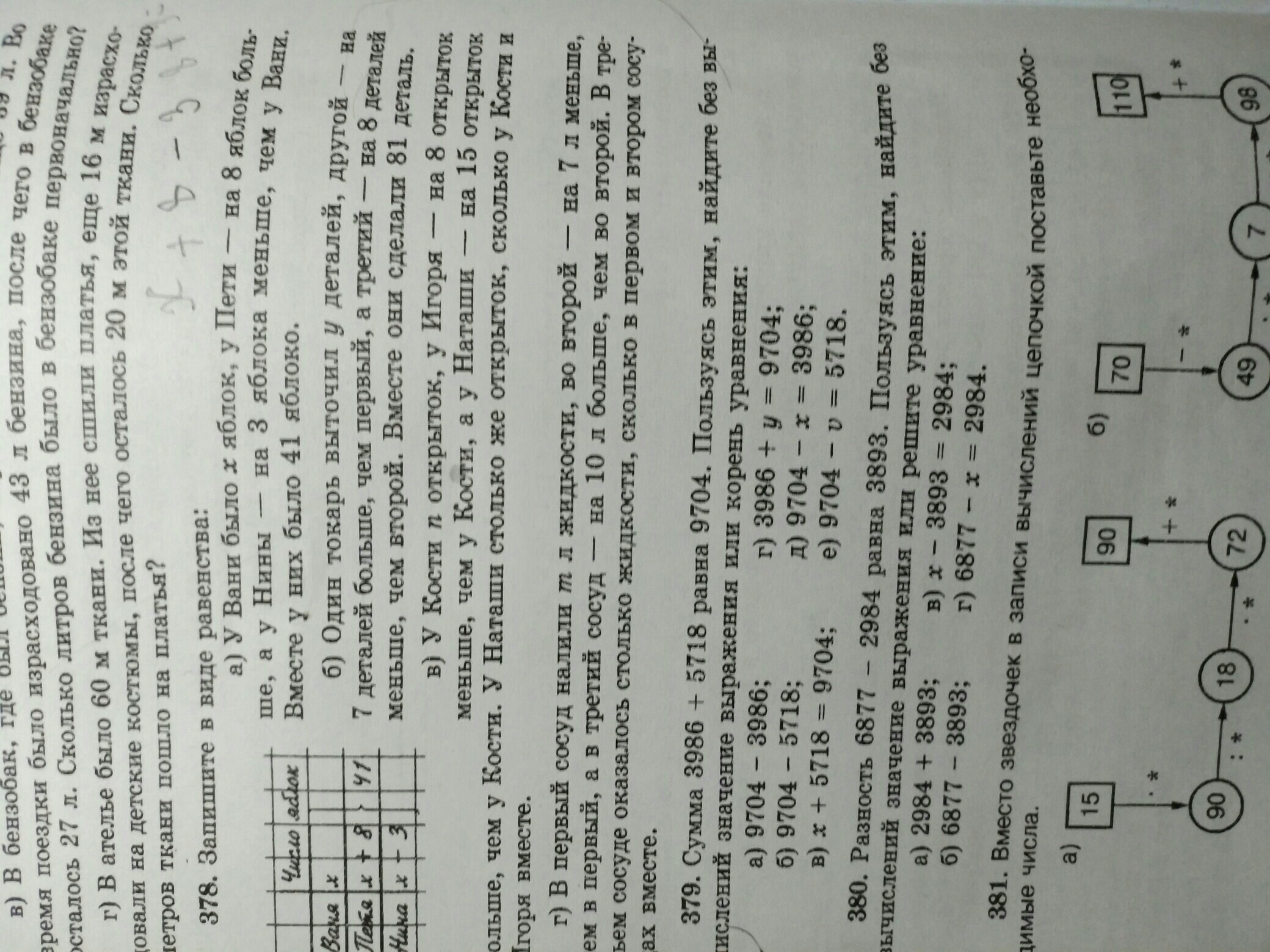 как решить задачу уравнением 378 а,б можно только а остальное пойму