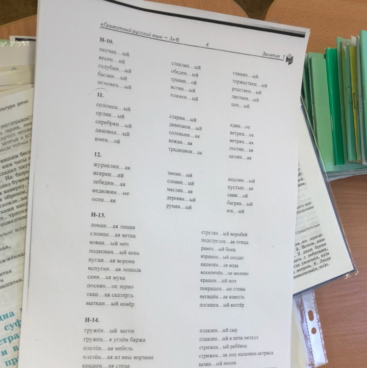 н-14. груженый, груженный, плетеная, плетенная, крашеная, дальше не видно, плавленый, плавленный, стриженый, стриженный, вязаный, дальше не видно.