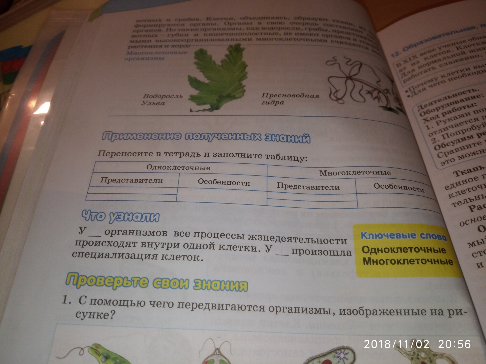 в первом, там где подчёркнуто, "одноклеточных". во втором - "многоклеточных"