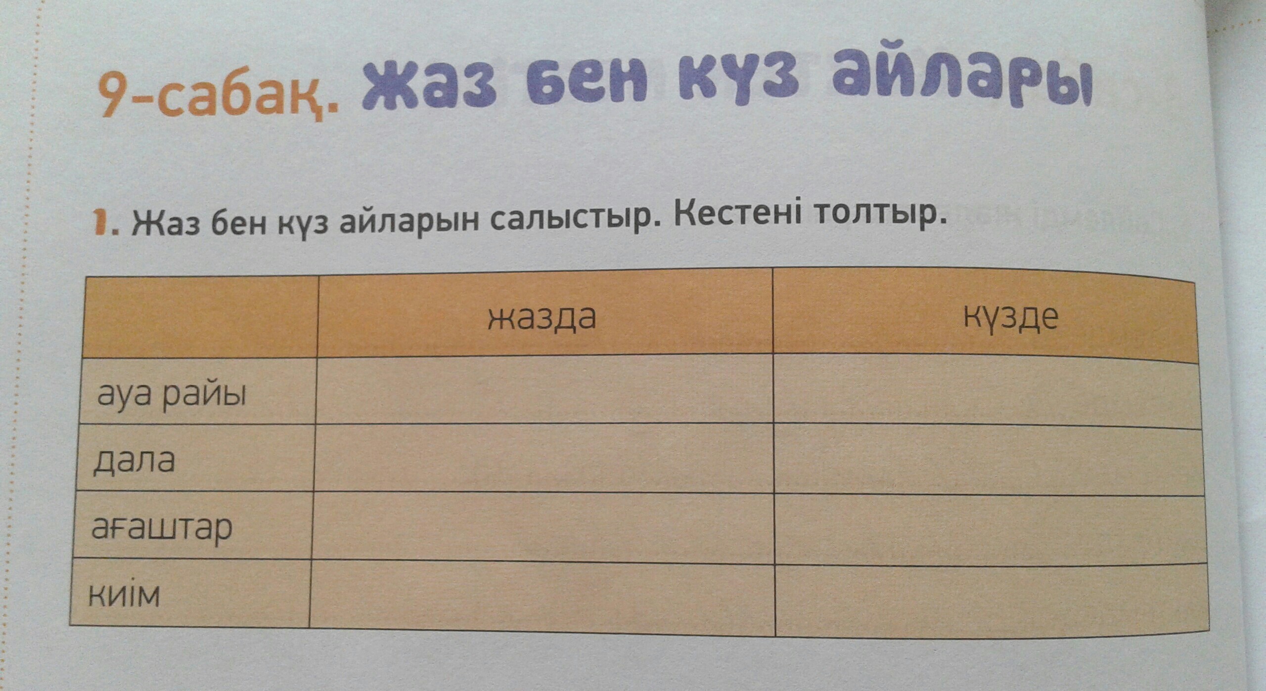 Жаз бен куз айларын салыстыр.Кестены толтыр.даю81баллов помогите пожалуста