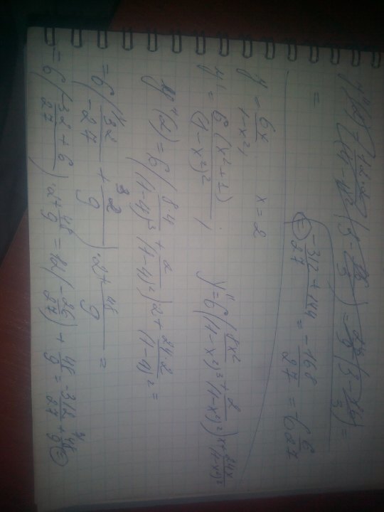 Вычислить значение 2-й производной в точке х=2 для функции у= 6х дробь 1-х²