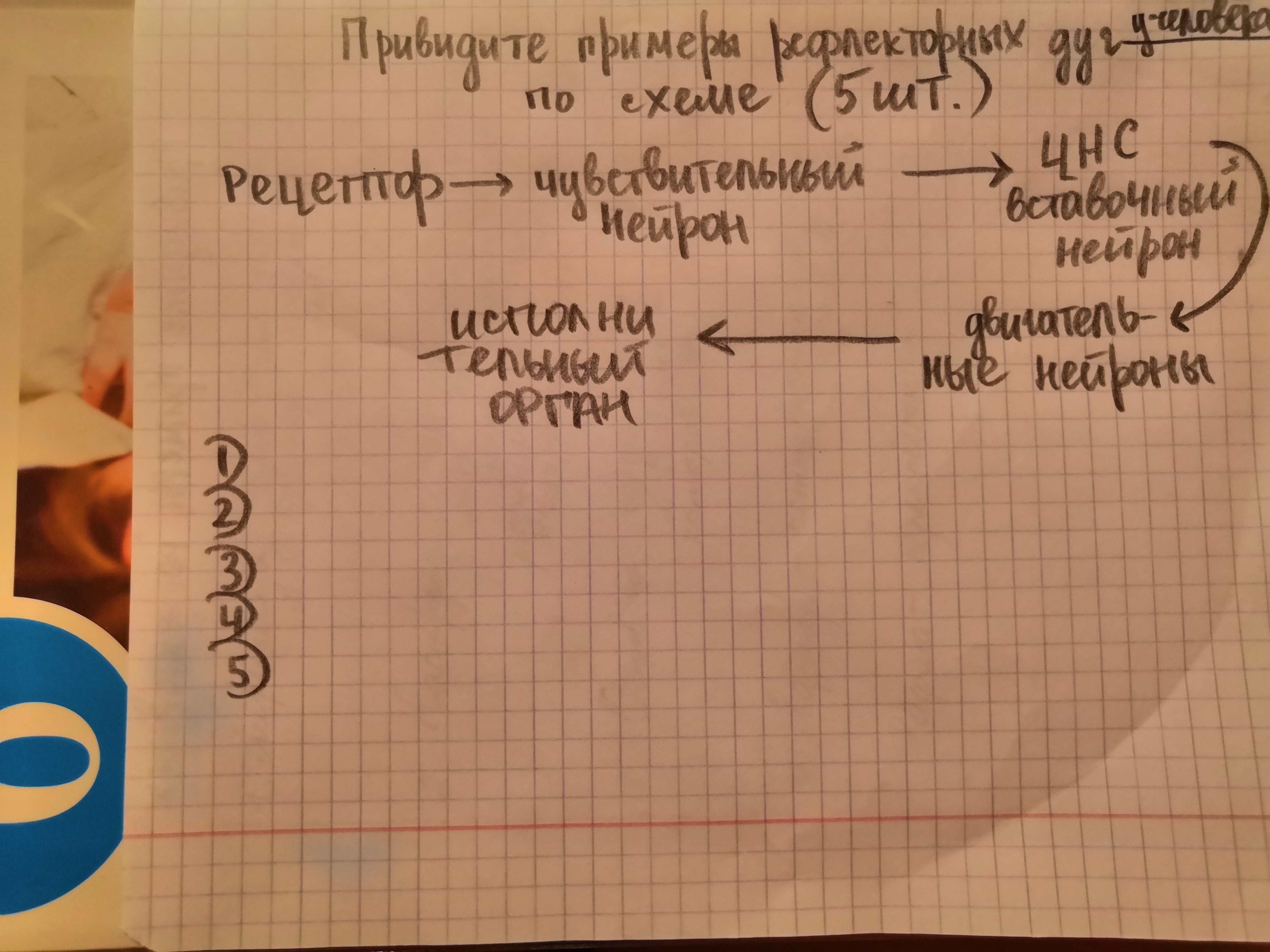 Привидите по схеме 5 примеров рефлекторные дуг у человека