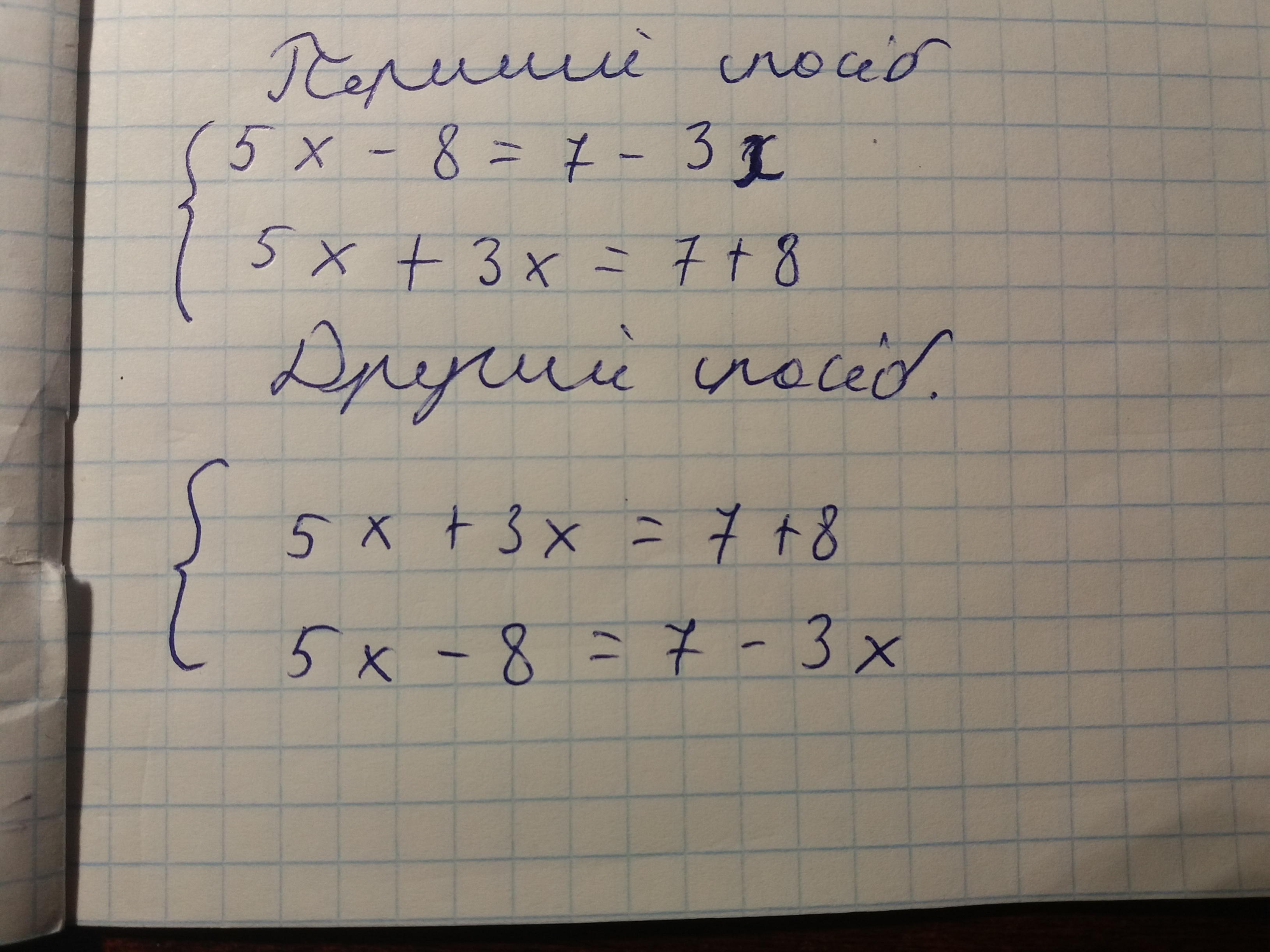 Обгронтуйте рівносильність рівнянь: 5x-8=7-3x i 5x +3x= 7+8
