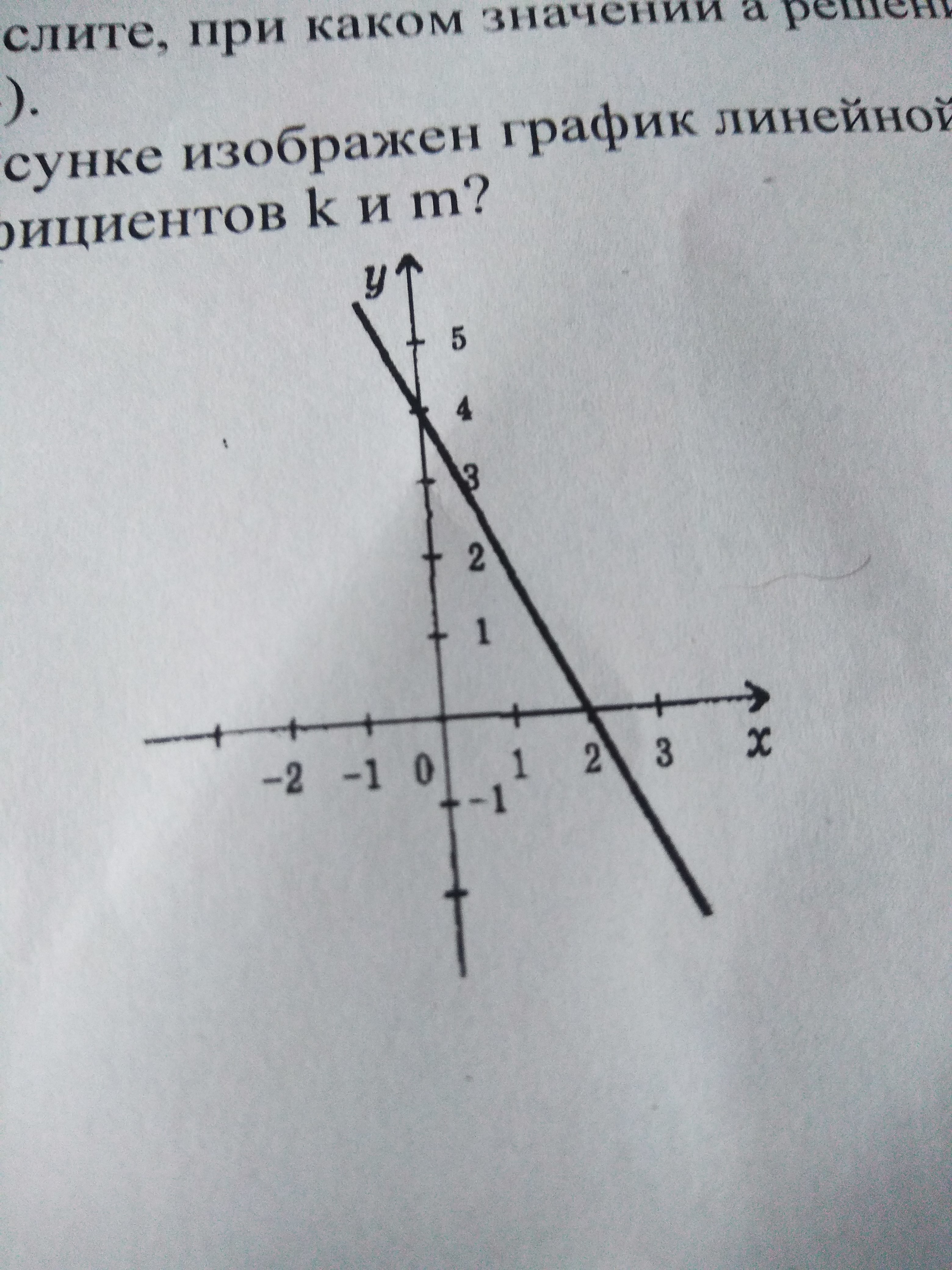 На рисунке изображен график линейной функции у = kх + m. Чему равны значения коэффициентов k и m?