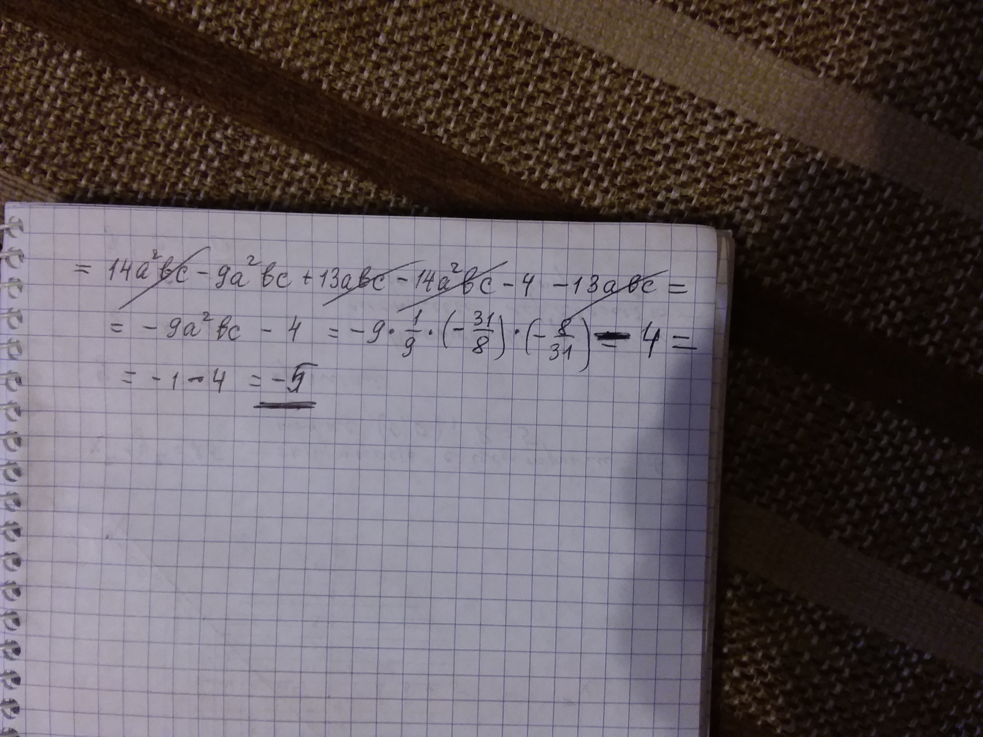 14a²bc-9a²bc+13abc-14a²bc-4-13abc=