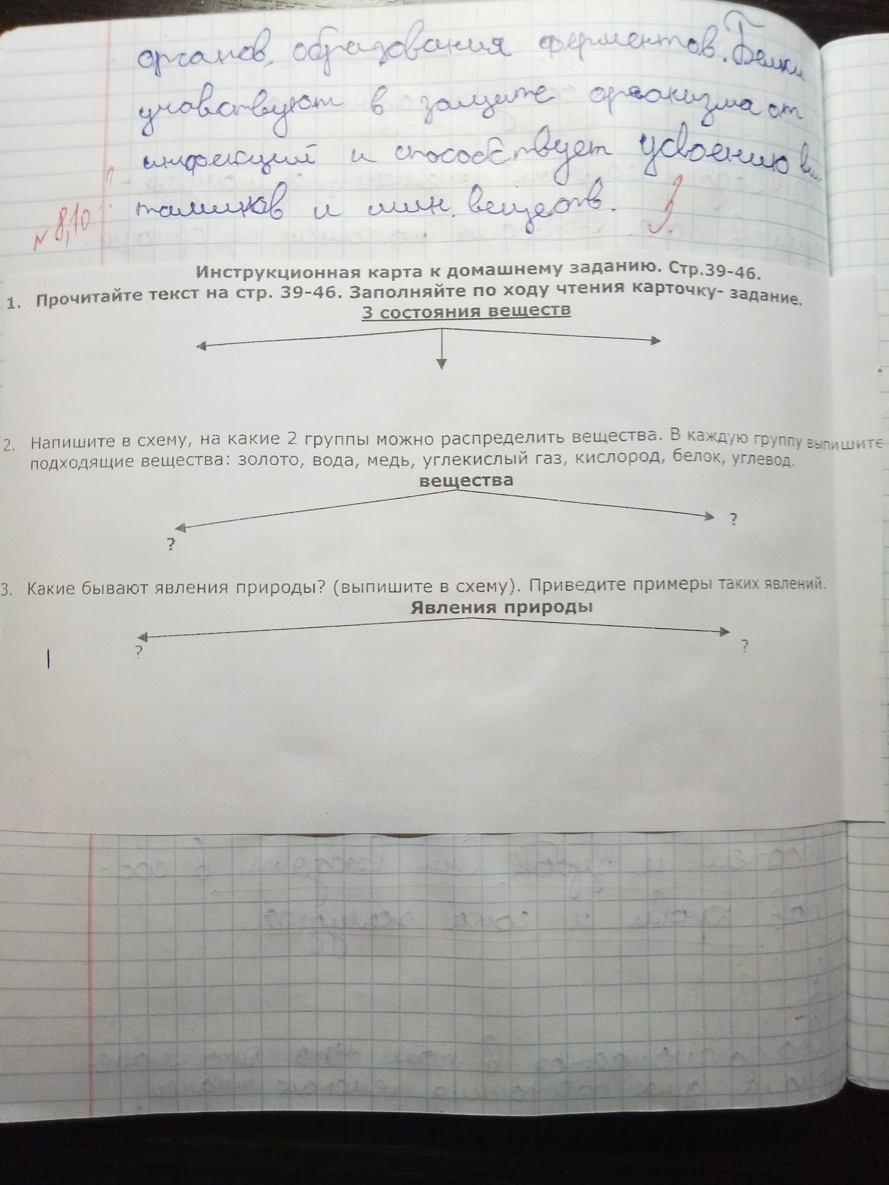 Напишите в схему, на какие 2 группы можно распределить вещества. В каждую группу выпишите подходящие вещества: золото, вода, медь, углекислый газ, кислород, белок, углевод.
