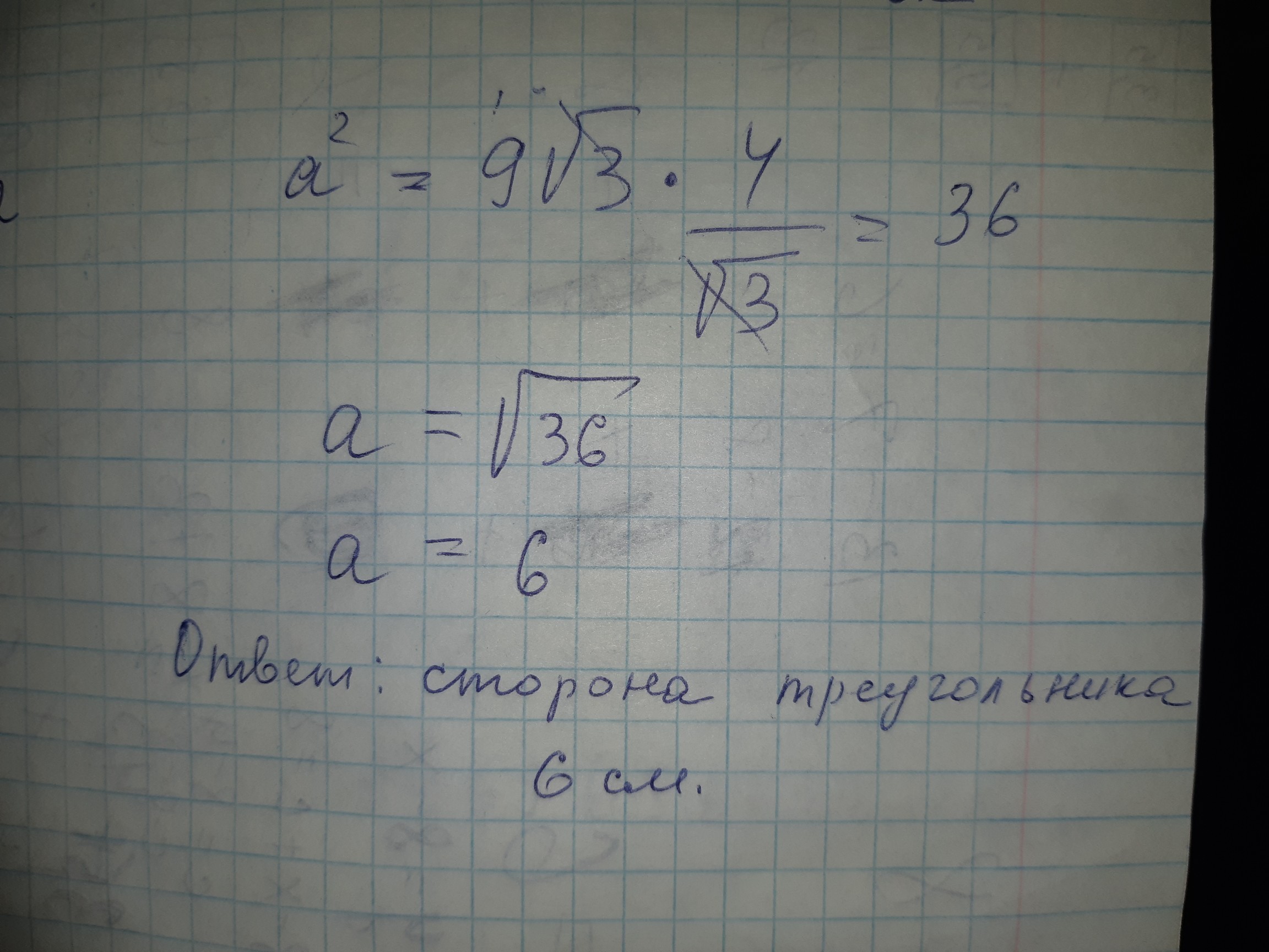 т.к сторона может быть только положительной то ответ 6