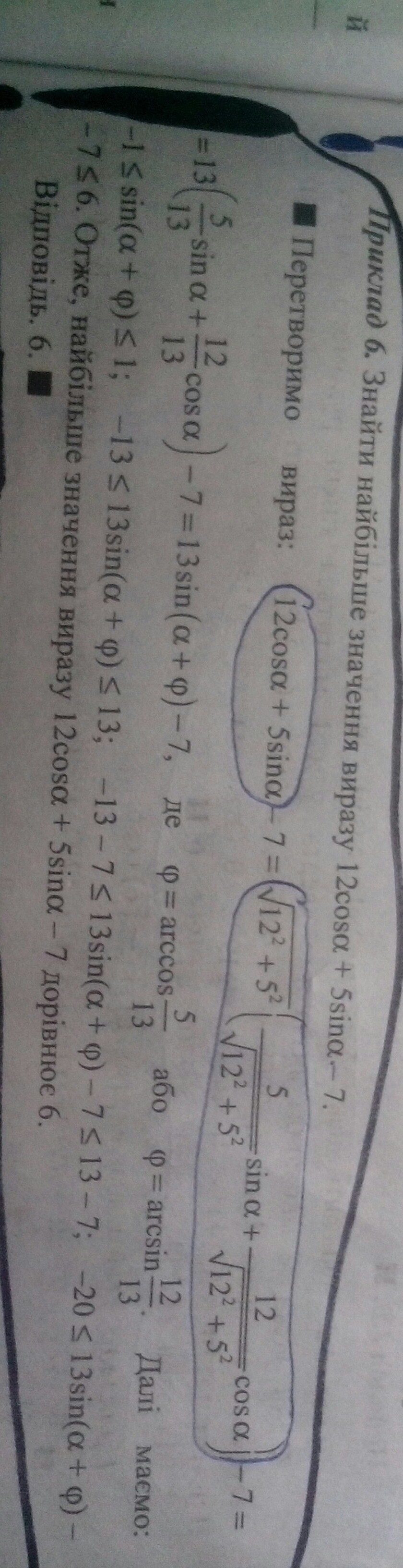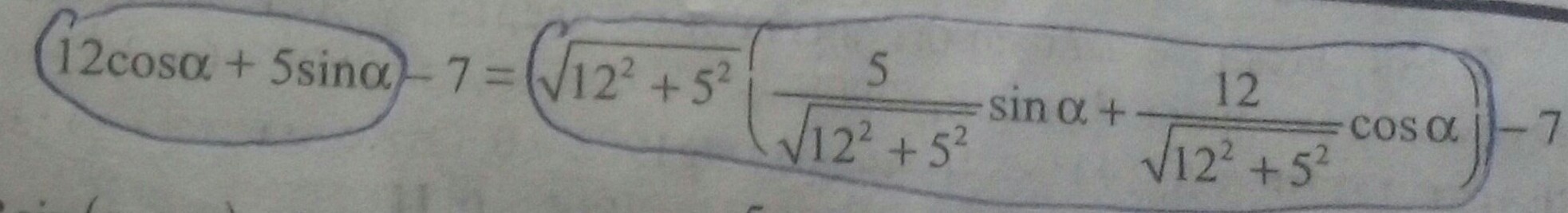 Здраствуйте обясните пожалуйста задачу : найти найбольшее значение у уравнении 12cosA+5sinA-7