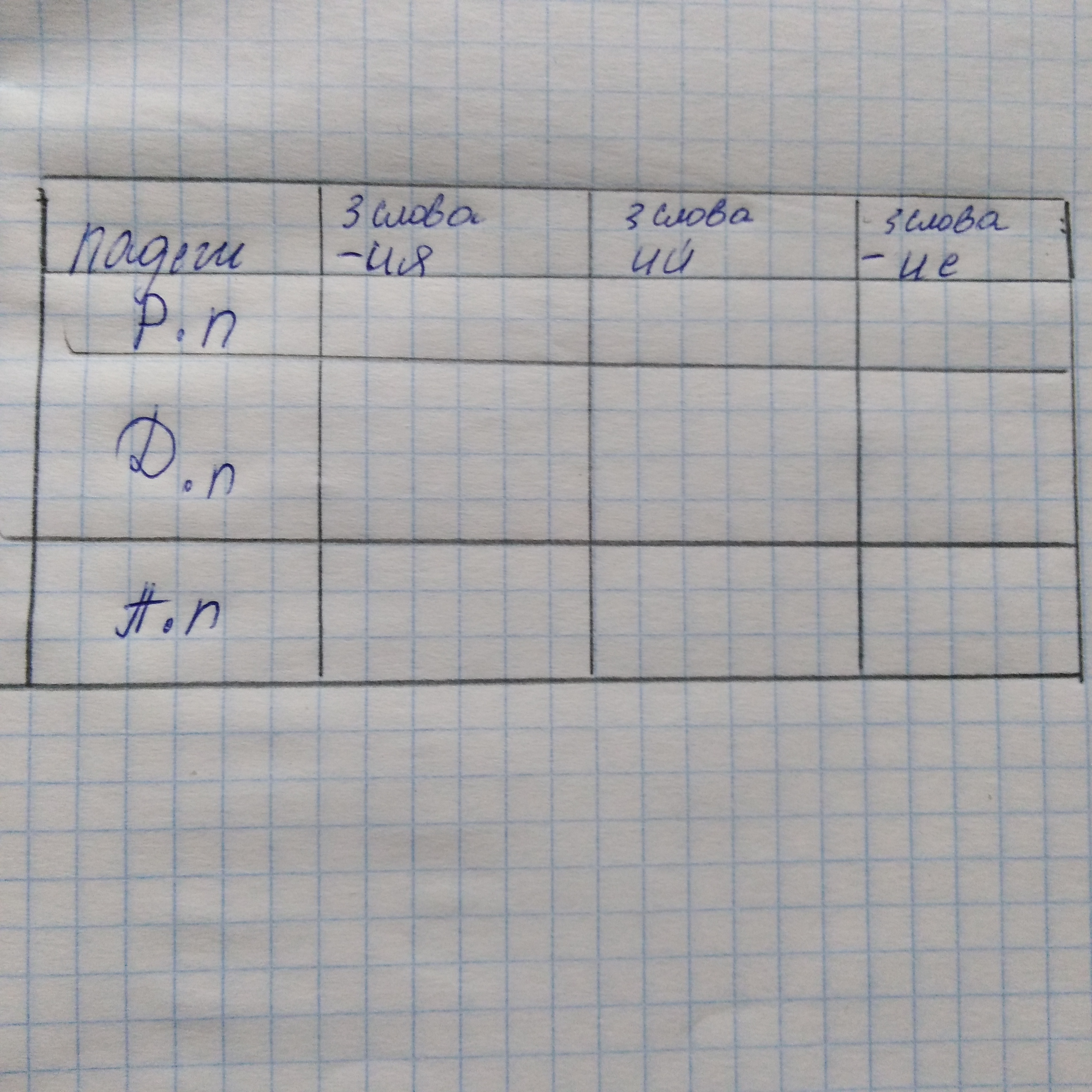 Надо по 3 слова с каждым падежом