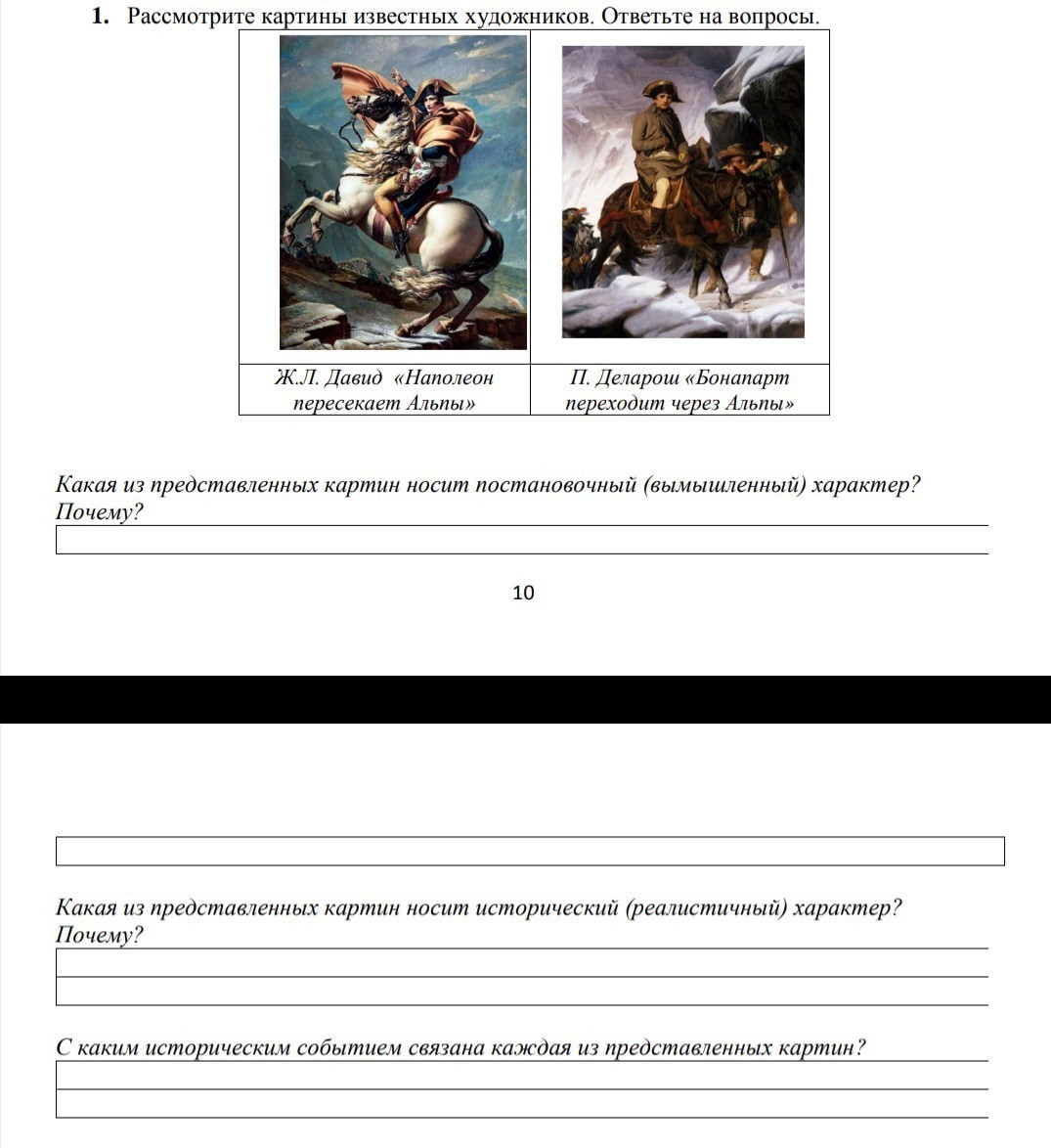 2)Картина Поля Делароша реалистична. Там уже мы видим Наполеона не таким величественным как нам представил Давид. Он изможденный и болезненный сидящем на муле. Его армия тоже изможденная из за этого перехода голод, мороз,сугробы, болезень и смерть вот это пережили французы.