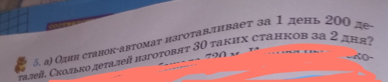 Один станок-автомат изготавливает за 1 день 200 деталей. Сколько деталей изготовят 30 таких станков за 2 дня? помогите решение и краткая запись