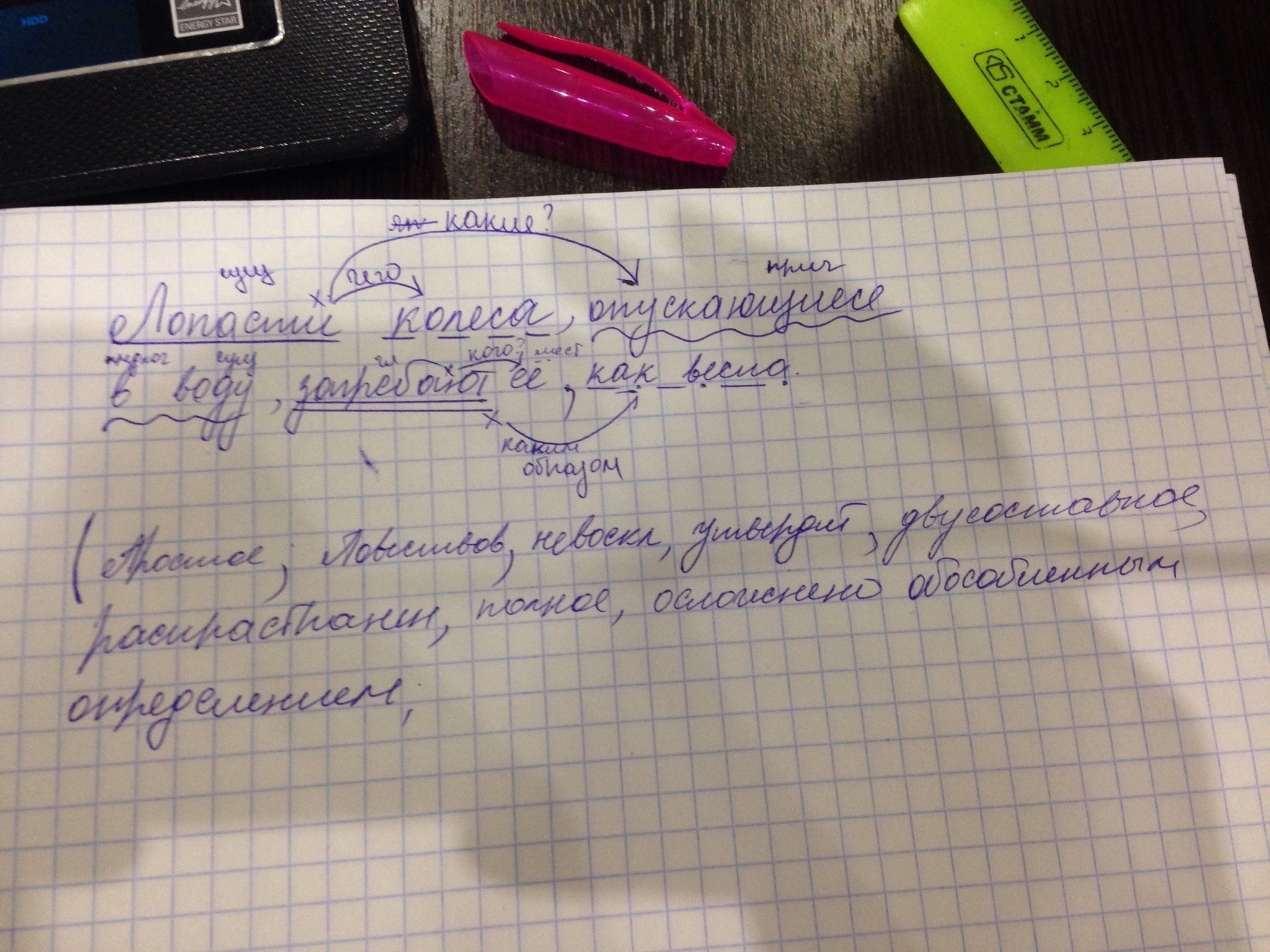 Синтаксический разбор предложения: Лопасти колеса, опускающиеся в воду, загребают её, как вёсла.4 Пожалуйста очень срочно!!!!!!!!!!!!!!!