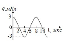 На рисунке приведен график зависимости заряда q от времени t в идеальном колебательном контуре. Период колебаний энергии электрического поля конденсатора равен