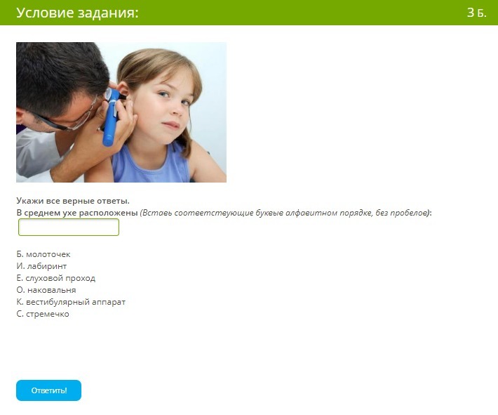 В среднем ухе расположены (Вставь соответствующие буквыв алфавитном порядке, без пробелов):