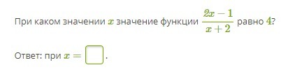При каком значении x значение функции 2x−1/x+2 равно 4?