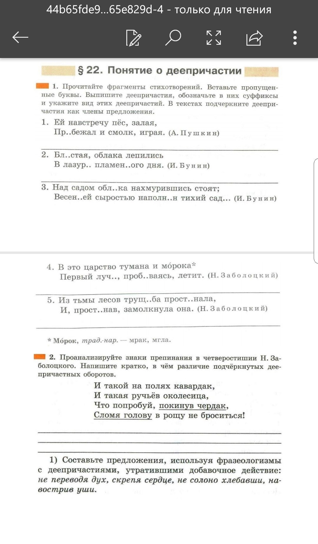 |. 1. ПрОбежал(приставка), 2. блИстая (чередование, корень блист-блест, после корня суффикс - а), в лазурИ(3скл.,предл.п), пламеННого(суффикс - енн), 3. облАка(запомнить), весеННий (прилаг., суффикс - енн), наполнен (краткое причастие, суффикс - ен), 4. луч(2скл), пробИваясь (корень - би-, пробИться) ; 5. трущОба(исключ.), простОнала, простОнав (стОн). ||. покинув чердак-деепричастный оборот, всегда выделяем запятыми(запятой), сломя голову - фразеологизм(устойчивый оборот речи), никогда не выделяем их запятыми). Предложение сложноподчиненное. Я продолжал улыбаться скрепя сердце. Домой вернулись не солоно хлебавши. Спрятавшись, я подслушивал разговор навостря уши. Ребята работают не переведя дух.