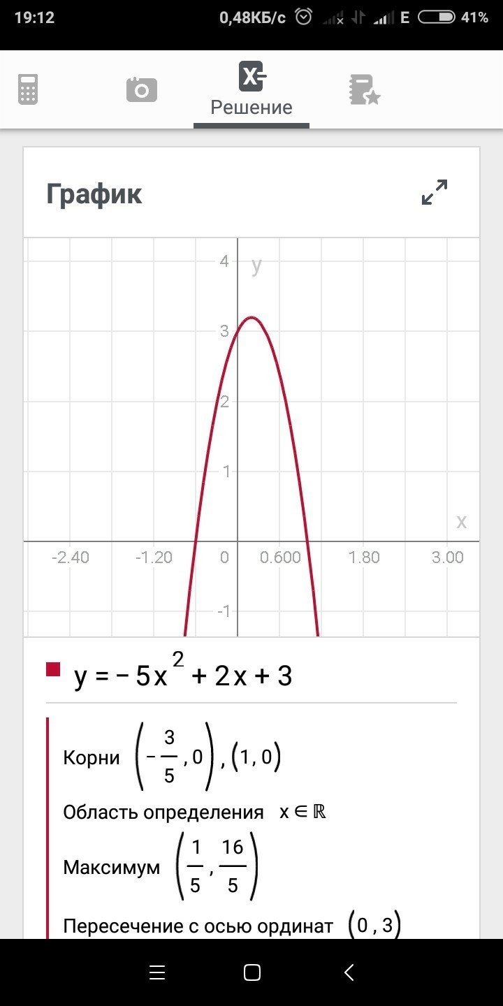 угору чи вниз напрямлені вітки параболи, яка є графіком функції: y=-5x²+2x+3