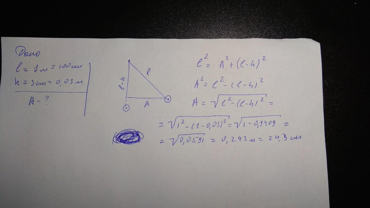 Довжина підвісу нитяного маятника 1 м. Максимальна висота підняття кульки над горизонтальною поверхнею під час її коливань дорівнює 3 см. Яка амплітуда коливань? Напишите решение пожалуйста и объясните ход решения!