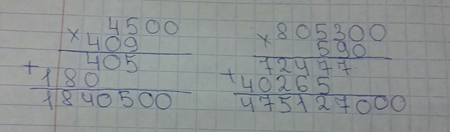 409*4500 , 805300*590 помогите пожалуйста!!! Столбиком.