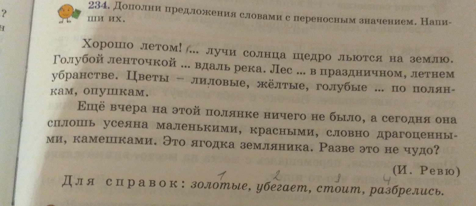 234.Дополни предложения словами с переносныс значением. Напиши их.