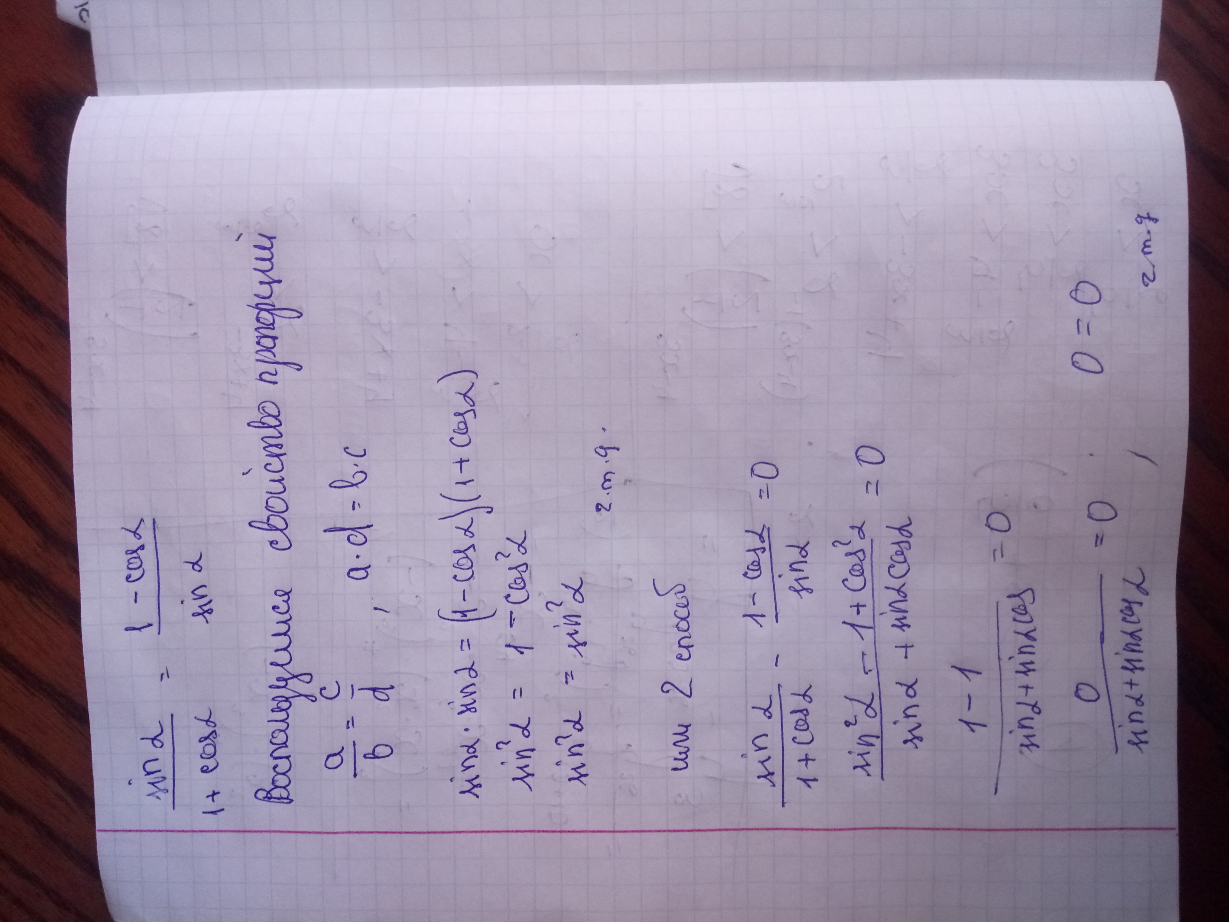 sin²a=1+cosa-cosa-cos²a, sin²a+cos²a=1, 1=1 чтд