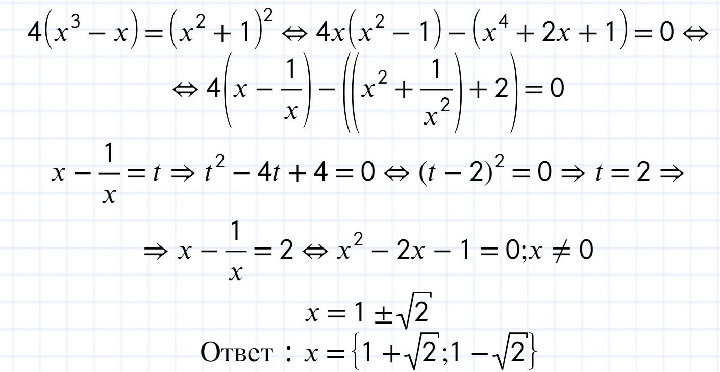 Помогите пожалуйста решить уравнение! 4(х^3-х)=(х^2+1)^2