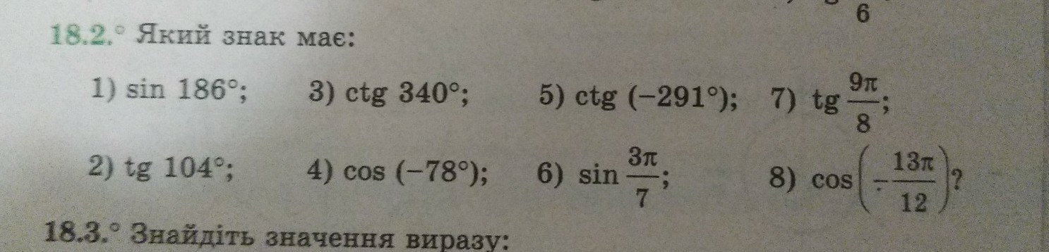 1)sin 186°<0 3четв. 3) ctg 340°<0 4 четв
