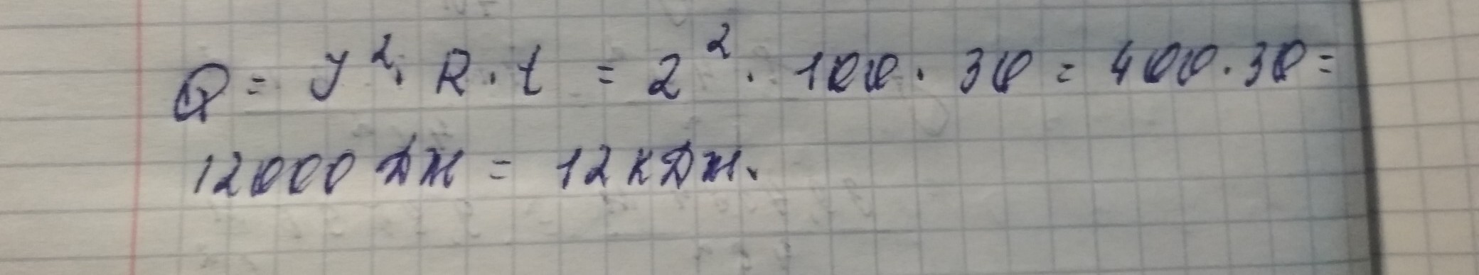 рассчитайте количество теплоты выделившееся за 30с на нагревательном приборе через который течет ток 2А если сопротивление данного прибора составляет 100 Ом