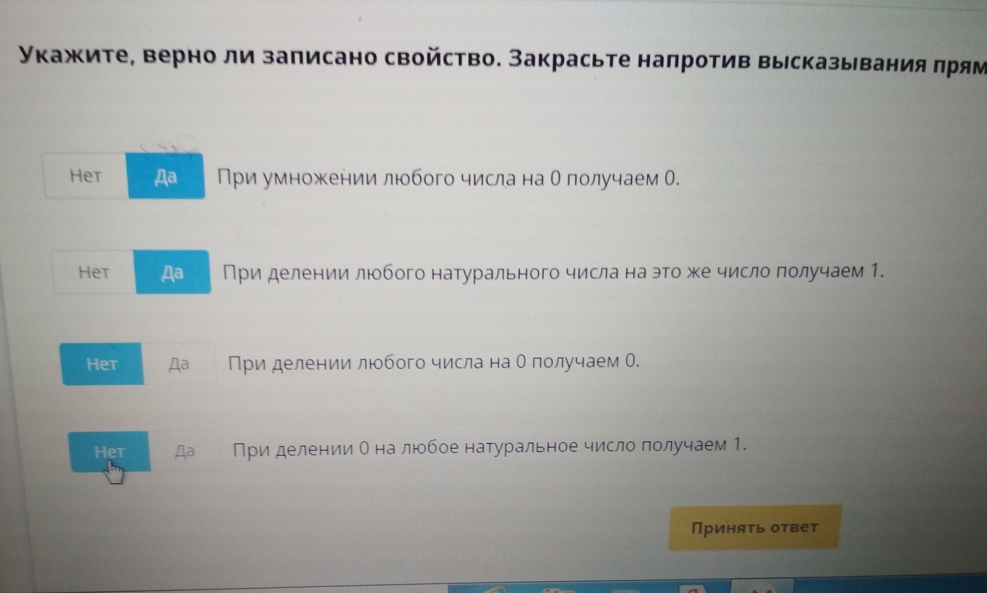 Третье утверждение неверно вами обозначено, ибо деление и умножение на 0 - одно и то же 0.
