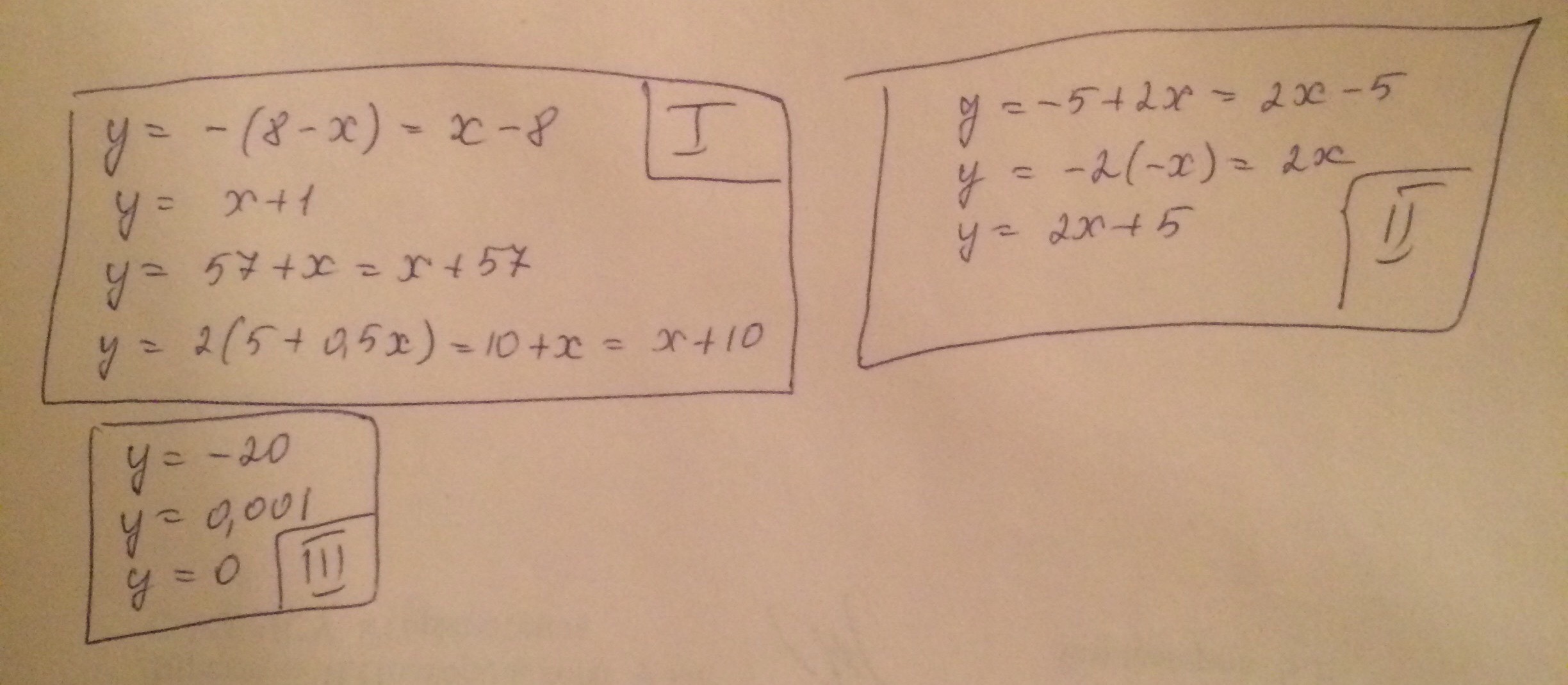 Параллельные прямые имеют равные угловые коофициенты. В l группе k=1; во ll группе k=2; в lll группе k=0