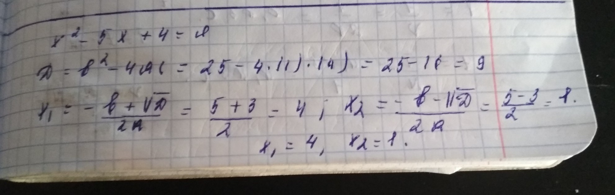 x^2 -5x+4=0