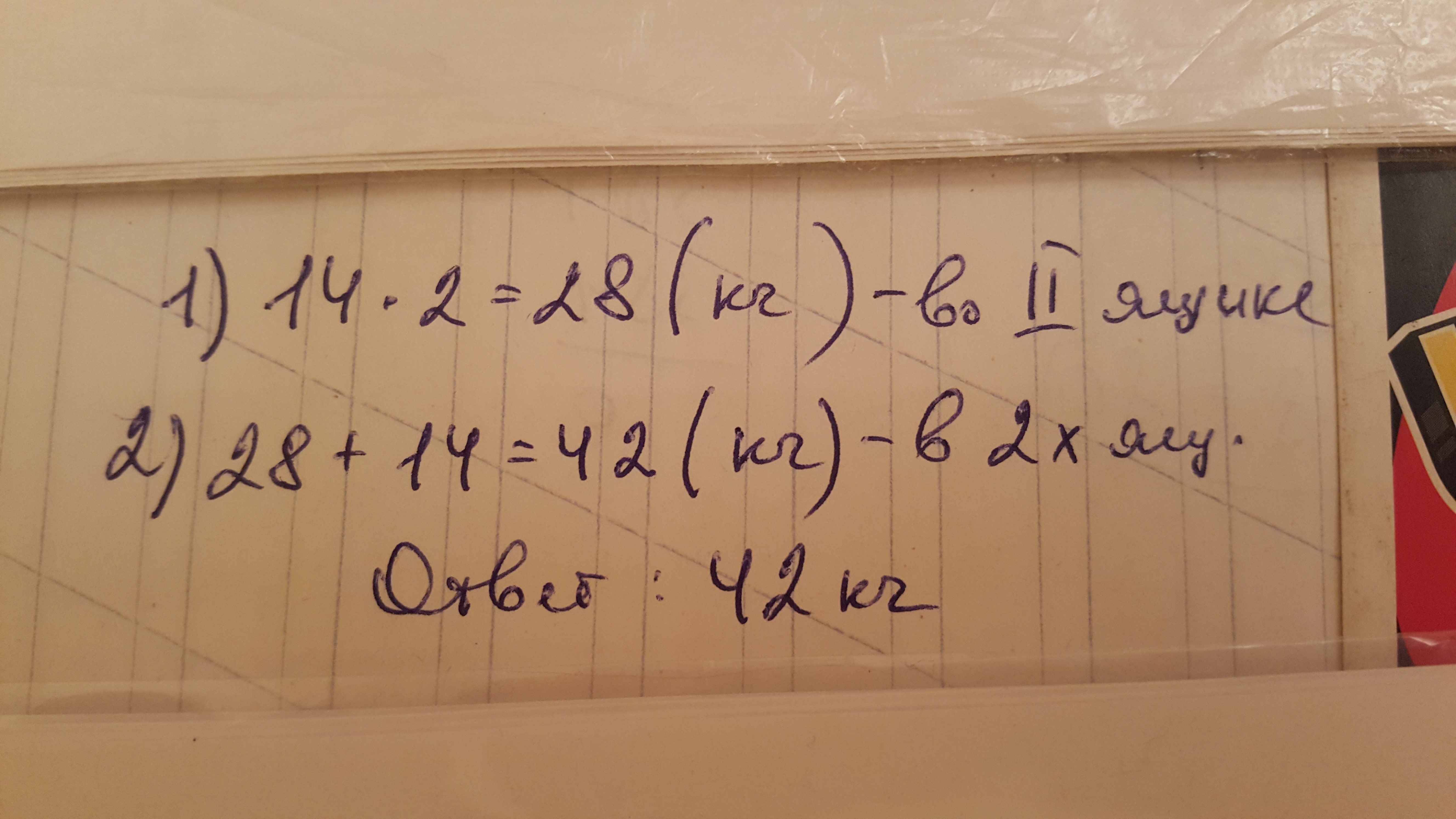 в первом ящике 14 кг слив, во втором - в 2 раза больше сколько килограммов в двух ящиках.