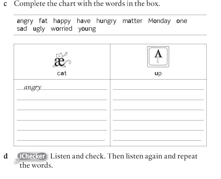 æ: angry, fat, happy, have, matter, Monday, sad, young.