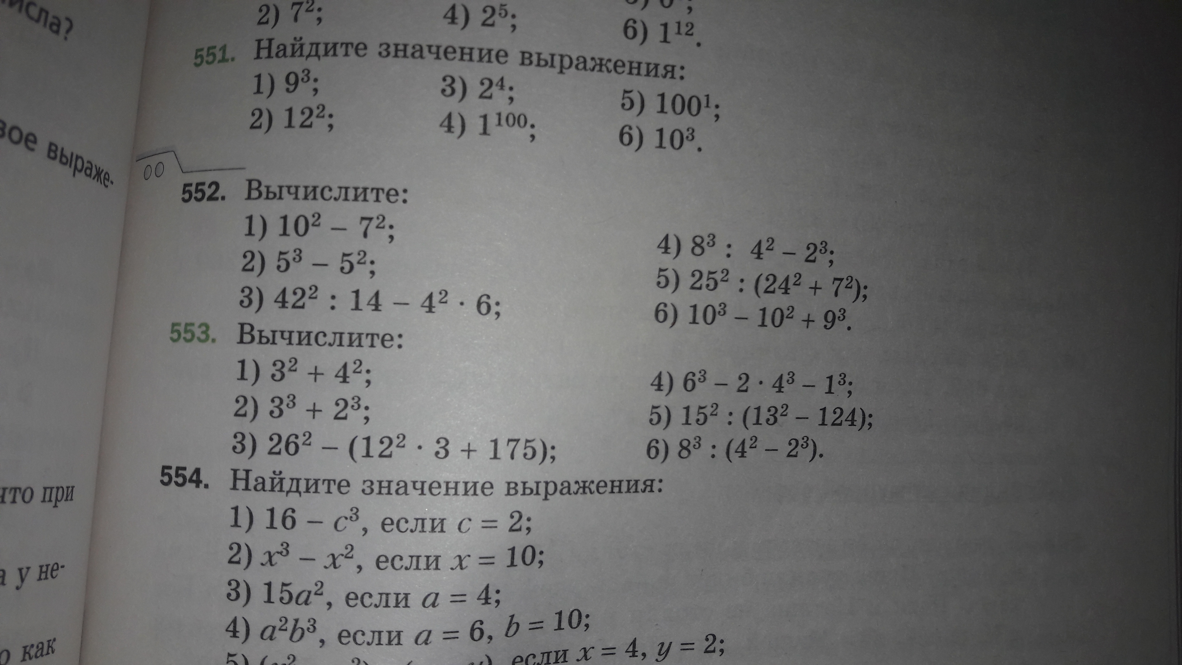 (Говорю сразу это степени чисел и ещё это номера 552 и 553)