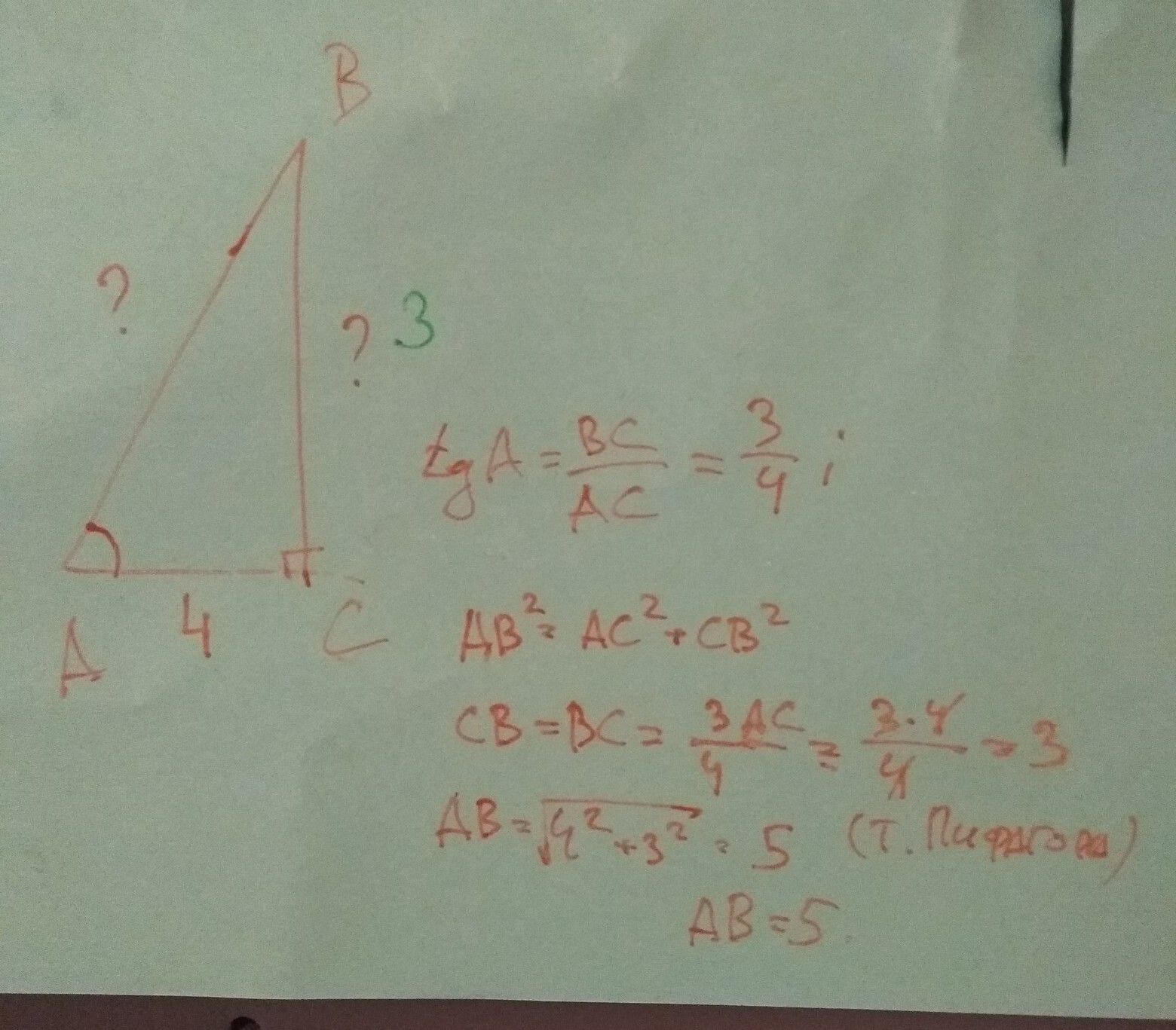 В треугольнике ABC угол C равен 90 градусов tga 3/4 AC равен 4 найдите AB