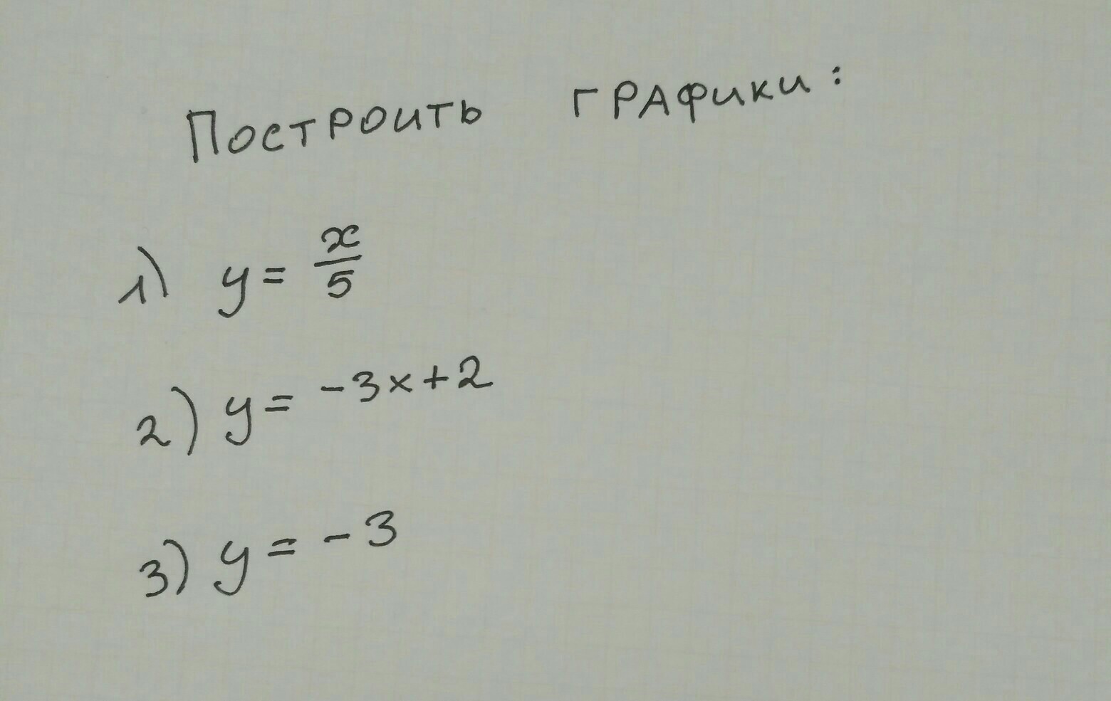 Все три графика это прямые. Для их построения достаточно задать всего 2 точки. Прямая у=–3 при любом значении х значение у всегда у=–3