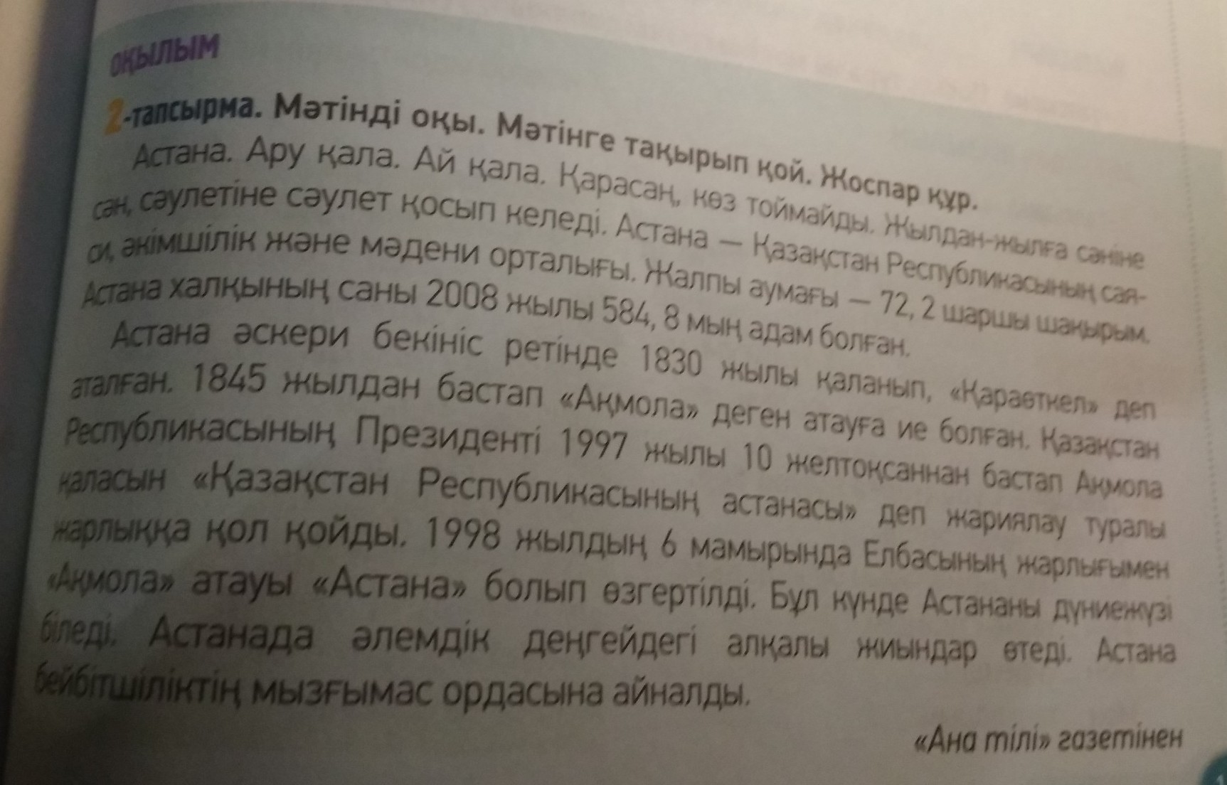 Мәтінді оқы. Мәтінге тақырып қой. Жоспар құр.