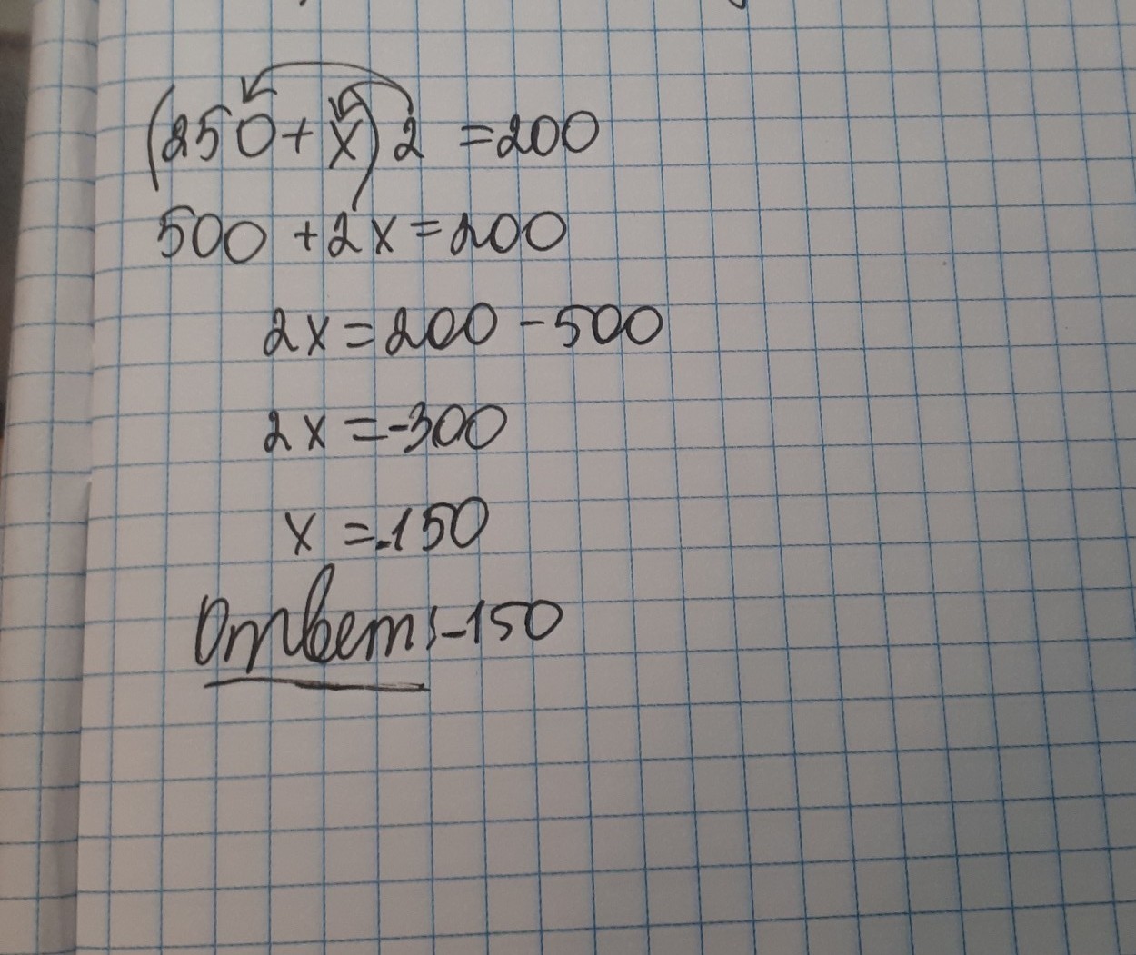помогите (250+x)×2=200решите пажалуйста